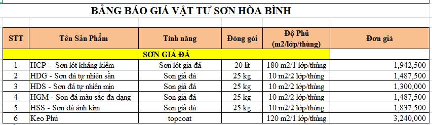 Sơn giả đá Hoà Bình là một loại sơn được tổng hợp từ các vật liệu bằng đá và các Thickeners làm đặc là Polyurethane, hình thành các liên kết chặt chẽ với dẫn xuất Silicon, sau khi sơn sẽ tạo ra bề mặt có những vân gai giống đá tự nhiên.