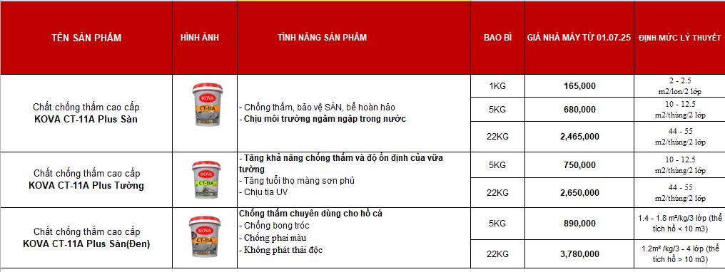 - Chất chống thấm cao cấp KOVA CT-11A Plus Sàn CT-11A chịu áp lực ngược nhẹ nếu thi công 3 lớp (tại vị trí như: hồ bơi, bể nước, sàn tầng hầm hay chân tường)